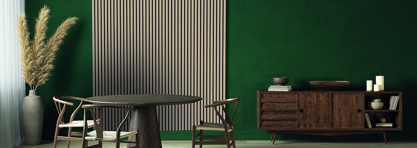 Die smarte Drehkollektion umfasst acht verschiedene MDF-furnierte oder folierte Akustikpaneele. Die Paneele sind in zwei verschiedenen Lamellenbreiten, diversen Eichenholz- und Walnussholz-Optiken und in exklusiven Höhen von 2,60 und 2,67 Meter erhältlich. Dank ihrer schallabsorbierenden Eigenschaften tragen die Akustikpaneele dazu bei, die Raumakustik zu verbessern und für eine angenehme Arbeits- und Wohnatmosphäre zu sorgen. Neben der Schallabsorption überzeugen die Paneele auch in puncto Nachhaltigkeit und Qualität – die Produkte stammen aus europäischer Produktion und die Filzbeläge bestehen aus recycelten Fasern.